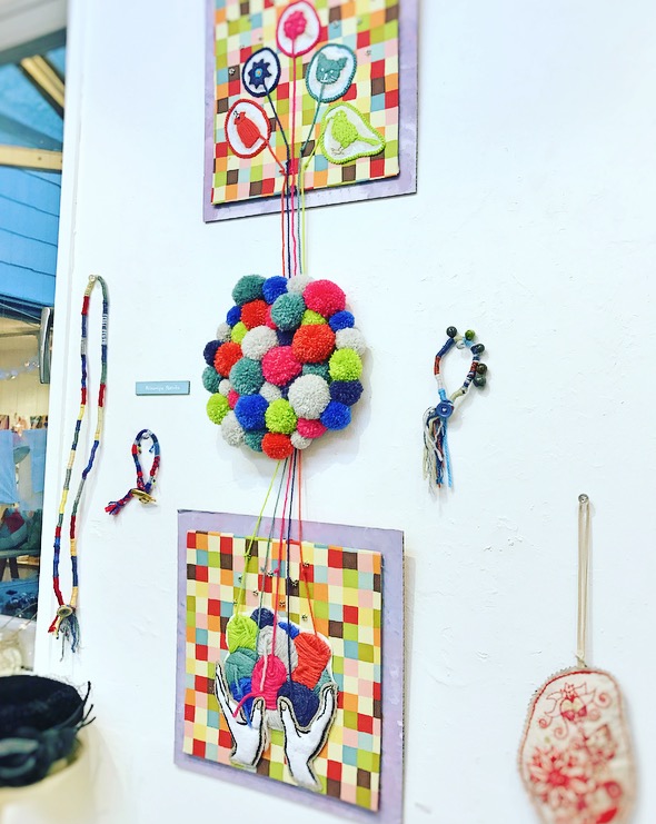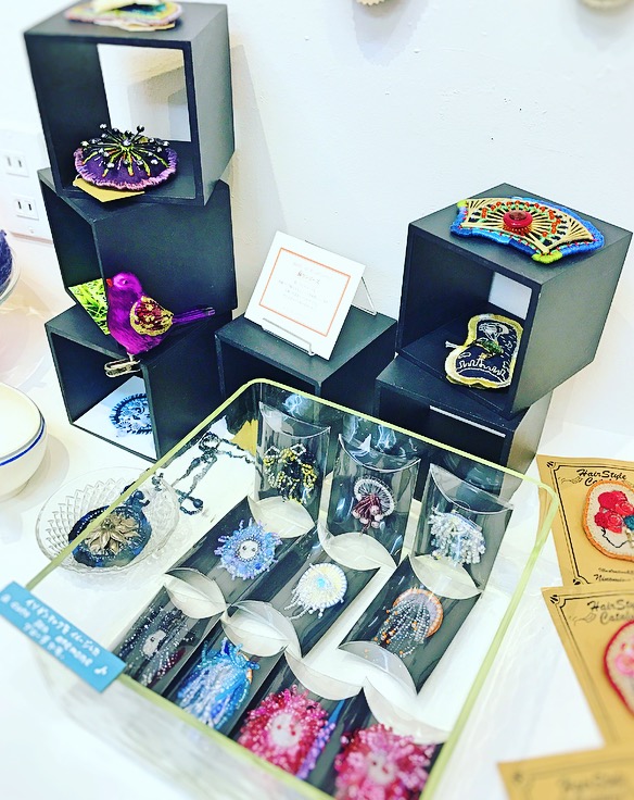 毛糸を使った壁掛けの作品やビーズを使ったカラフルなブローチなど、どれもセンスが良く気付けば長時間滞在してしまいました〜。