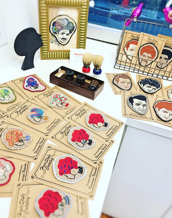 このhair catalogシリーズはダンティな男性と横顔美人な女性が刺繍によって様々なヘアースタイルになっているとてもユニークな作品です☺︎